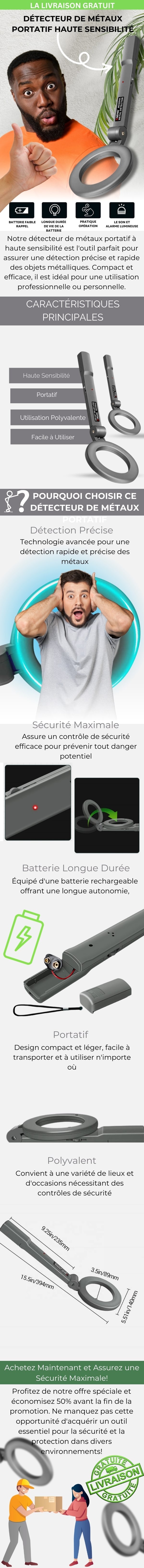 Détecteur de Métaux Professionnel – Pointeur Portable Haute Sensibilité pour Or, Argent et Trésors Cachés